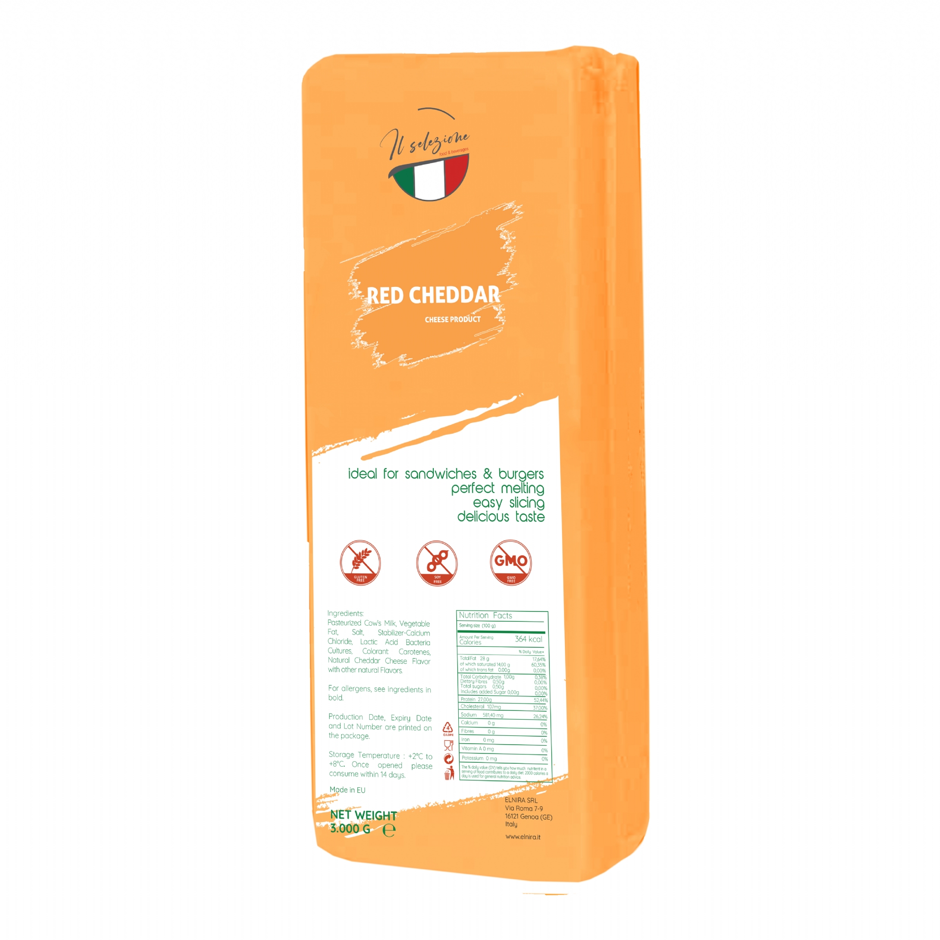 Delicious Block Analogue Red Cheddar Cheese made with %100 Milk and Vegetable Fat.