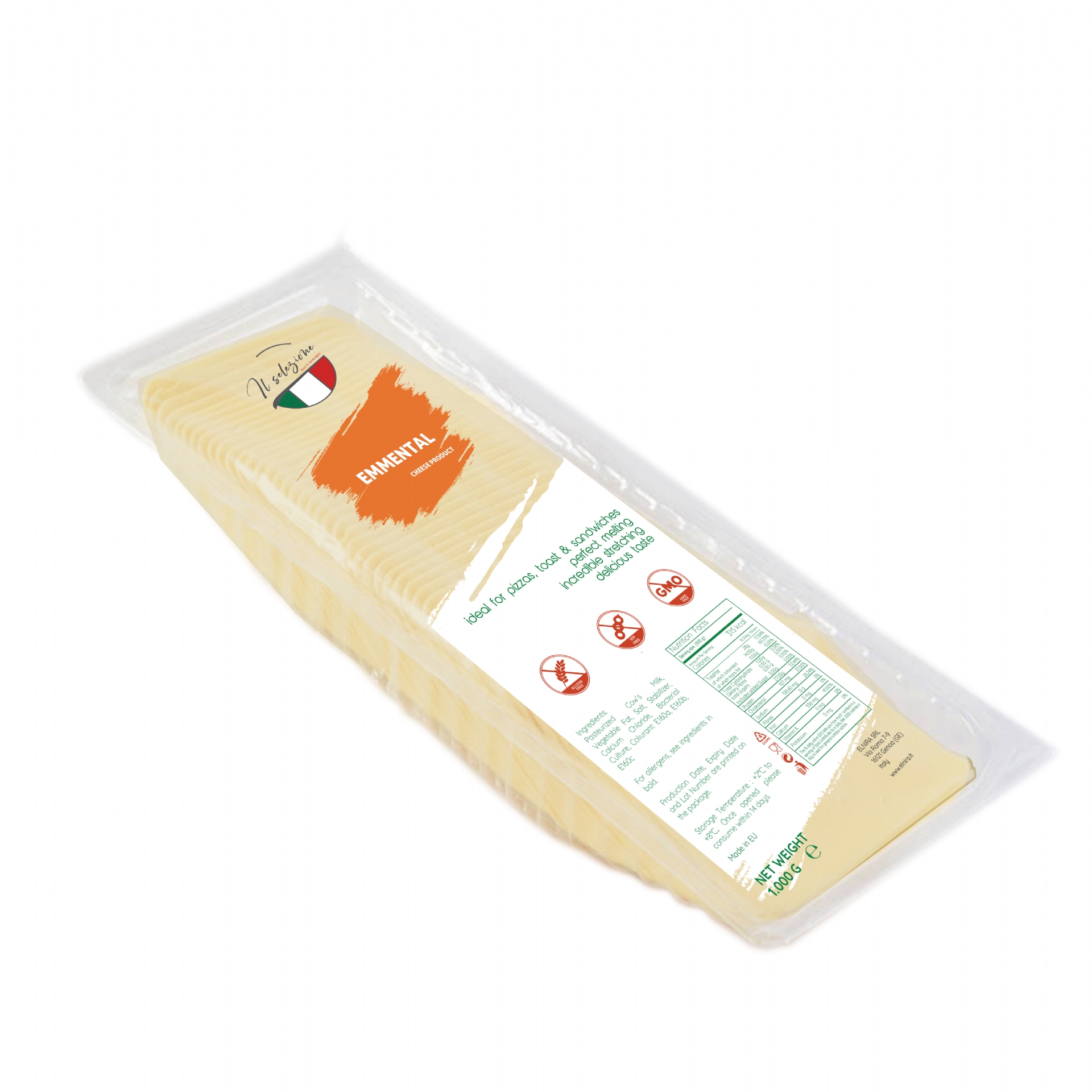 Delicious Sliced Analogue Emmental Cheese made with %100 Milk and Vegetable Fat.