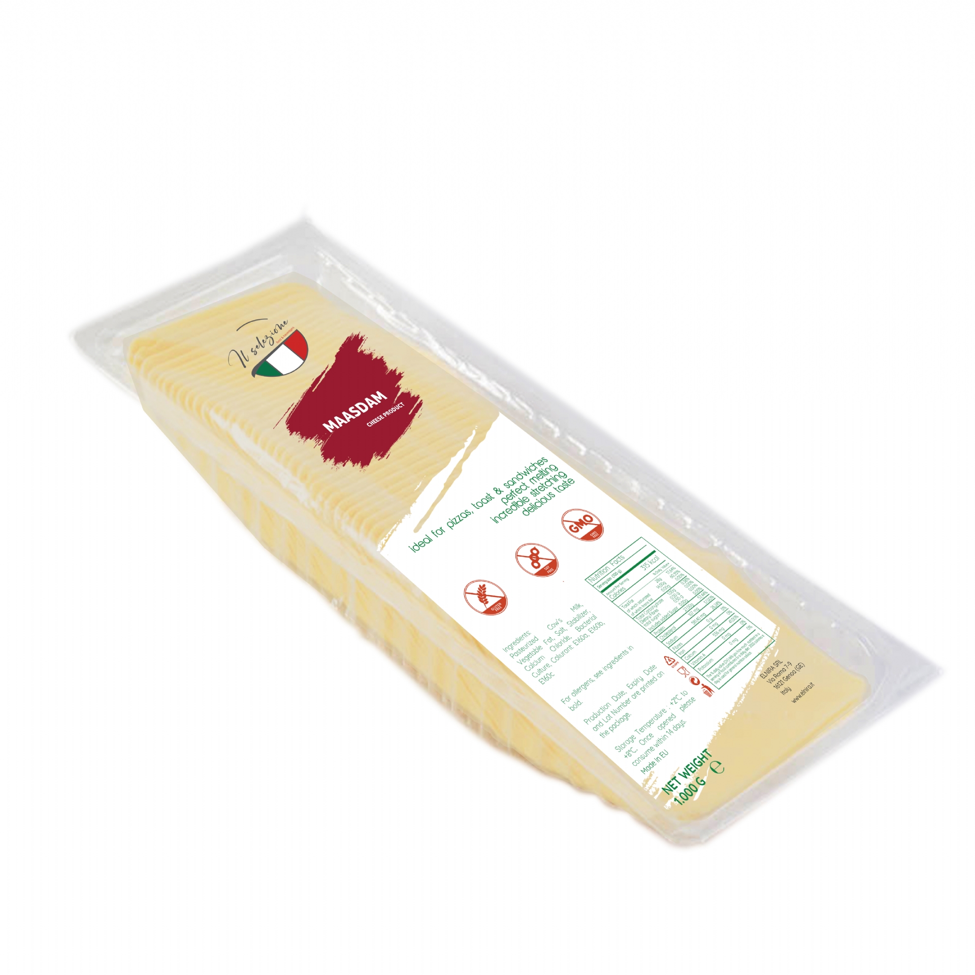 Beside the wide Packaging variety we are able to supply all our Sliced Analogue Maasdam Cheese with a long Shelf Life for our Retail, HoReCa, Wholesale and Industrial Customers.